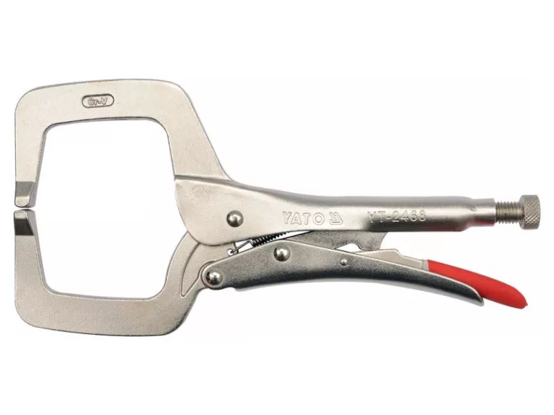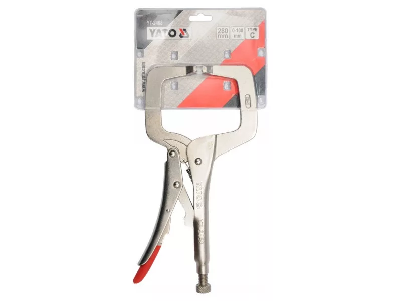 Welding pliers with type C jaws. Total length 280mm. They have a screw adjustment of the opening to adjust the jaw spacing depending on the thickness of the grasped material - max. They have a European type closure. Nickel plated surface.