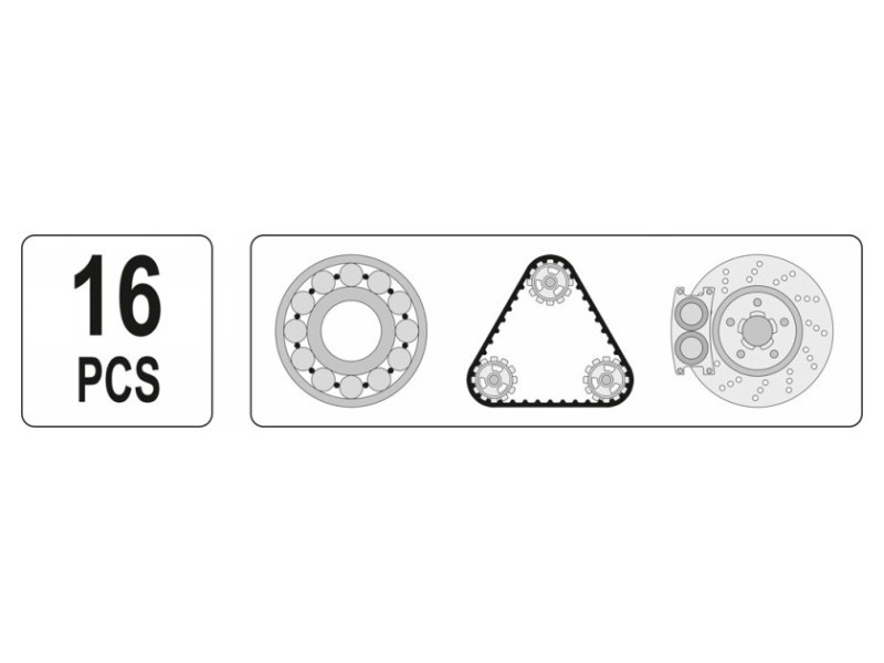 A set of tools for safe disassembly of hubs, bearings and gears. The set consists of 16 elements placed in a comfortable suitcase. The elements are made of high quality steel. Mechanical services, car workshops.