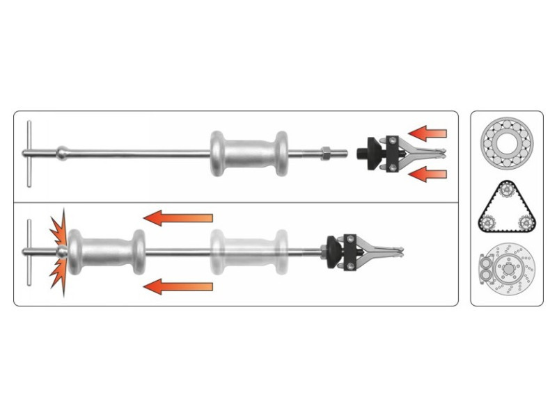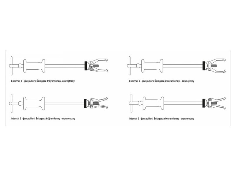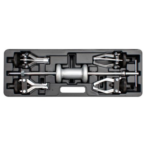 Set includes3-arm external puller, 2-arm external puller, 3-arm internal puller, 2-arm internal puller, handle, hammer