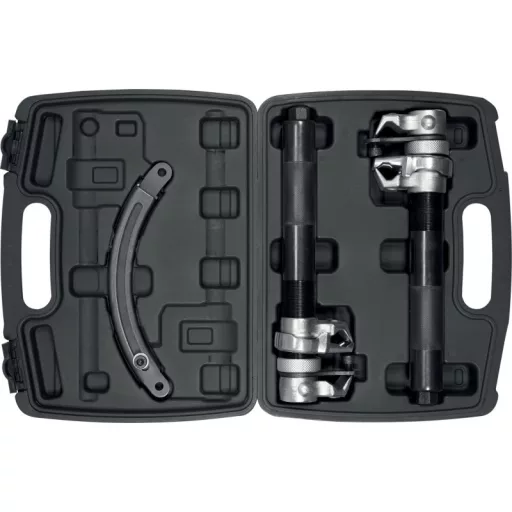Set of spring compressors YT-25450, with a working range of 35-280 mm, provides reliability and precision when servicing cars, trucks, and motorcycles.