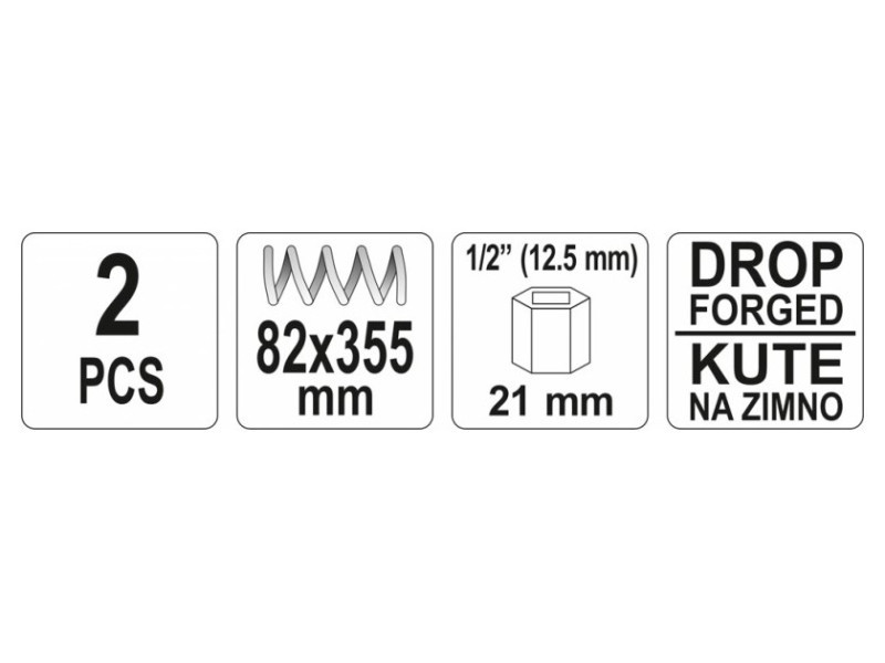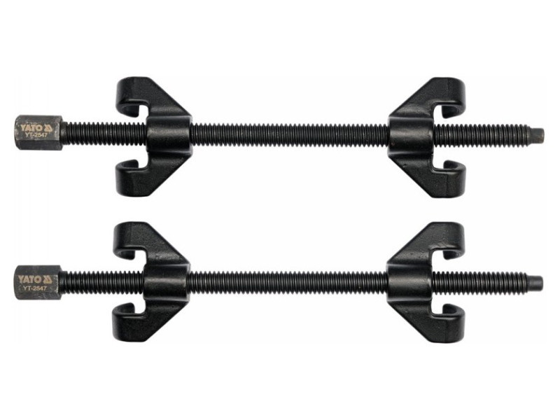 Professional spring pullers with a length of 355 mm designed for safe and convenient installation and removal of springs in MacPherson columns, among others. Indispensable in every car workshop. The work is safe, thanks to specially contoured, two-arm handles.