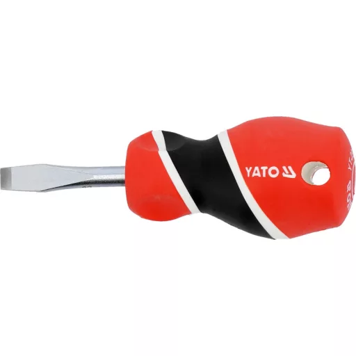 Flat screwdriver. Carrive heel, made of steel with the S2 symbol, hardened to about 58 HRC. The surface of the satin, the working tip is hardened and sandblasted / strengthens the stability of the grotto /. Handle made of properly selected materials of various hardness.