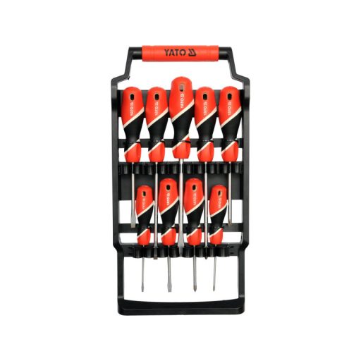 Set of nine screwdrivers with shank made of S2 steel, hardened to approximately 58 HRC.