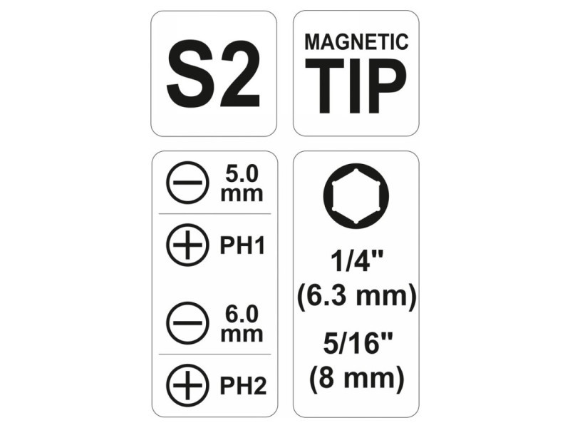 | Tip | flat, Phillips (PH), magnetized |