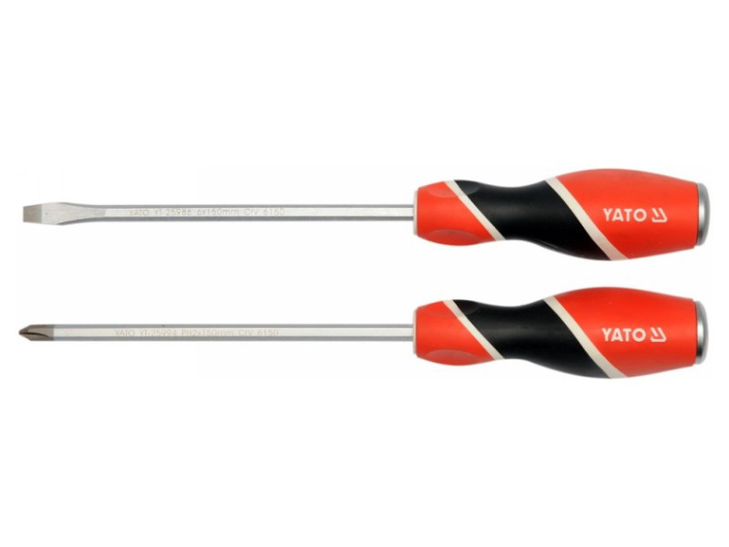 Professional screwdrivers made of steel with a CRV6150 symbol. The special, reinforced structure allows beating with a hammer. Designed for hard assembly work in industry and crafts designed for heavy assembly work in industry and craftsmanship