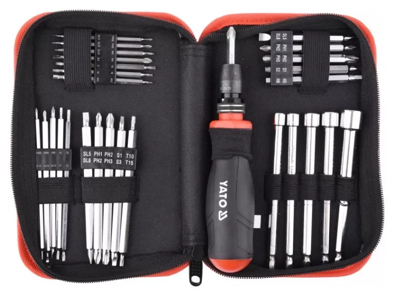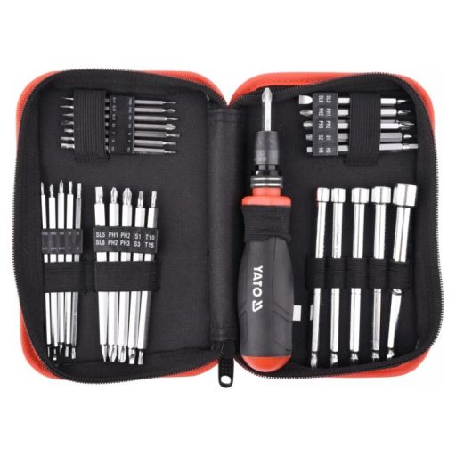 YATO YT-24940 brand interchangeable bit screwdriver, bit set, precision bits and sockets.