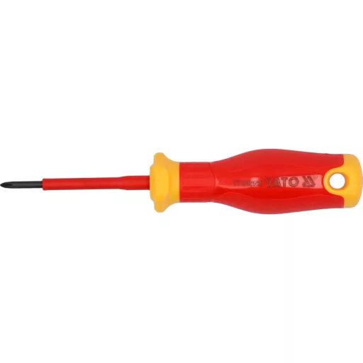 Insulated slim screwdriver with a Philips tip. The tapered shaft design with matched insulation makes it easier to access hard-to-reach places and ensures safe work under voltage up to 1000 V.