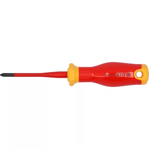 Insulated slim screwdriver with a Philips tip. The tapered shaft design with matched insulation makes it easier to access hard-to-reach places and ensures safe work under voltage up to 1000 V.
