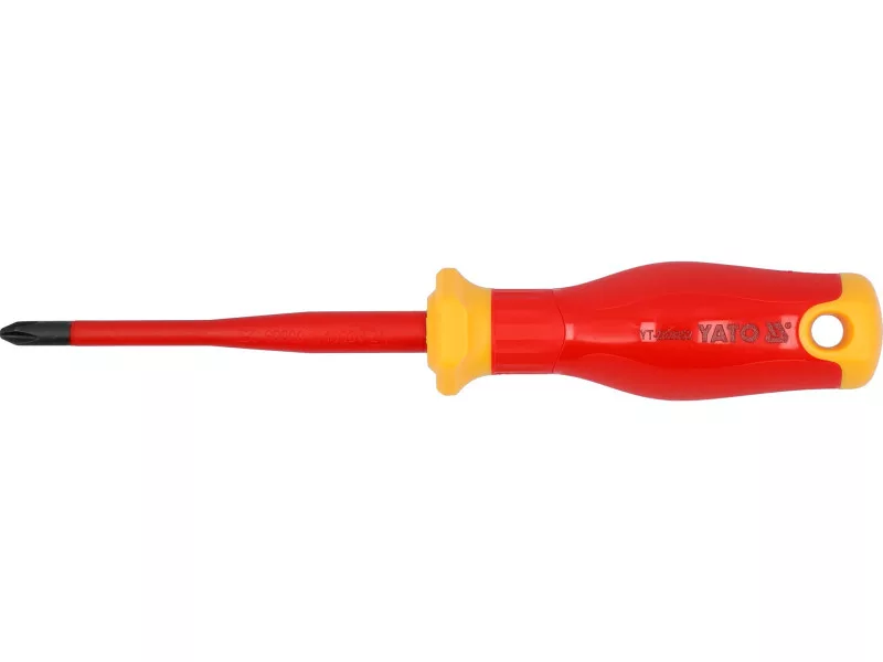 Screwdriver from the slim series with a Philips tip. The tapered shaft design with matched insulation allows for easy access to hard-to-reach places and ensures safe work under voltage up to 1000 V. Durable handle made of PP with non-slip TPE material improves work ergonomics. The tip made of hardened S2 steel provides durability and maintains the shape of the bit for a long time. - material: durable, damage-resistant S2 steel - handle made of durable PP and TPE materials - safe work under voltage up to 1000 V