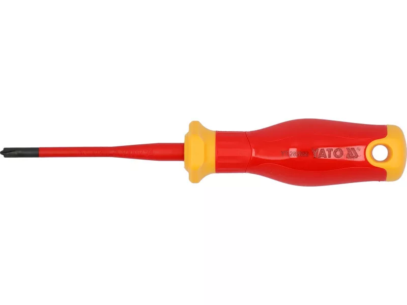 Insulated screwdriver from the slim series with SL-PH tip. The tapered shaft design with matched insulation allows for easy access to hard-to-reach places and ensures safe work under voltage up to 1000 V.