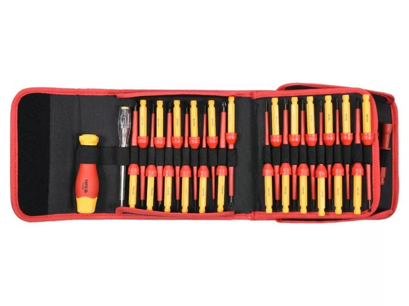 Set of screwdriver + bitsówks 50 parts YT-28293 with handle in VDE insulation, blades made of strong steel S2 with a hardness of HRC 56-60.