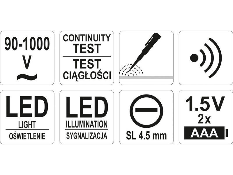 | Voltage - non-contact test | 90-1000 V a.c. |