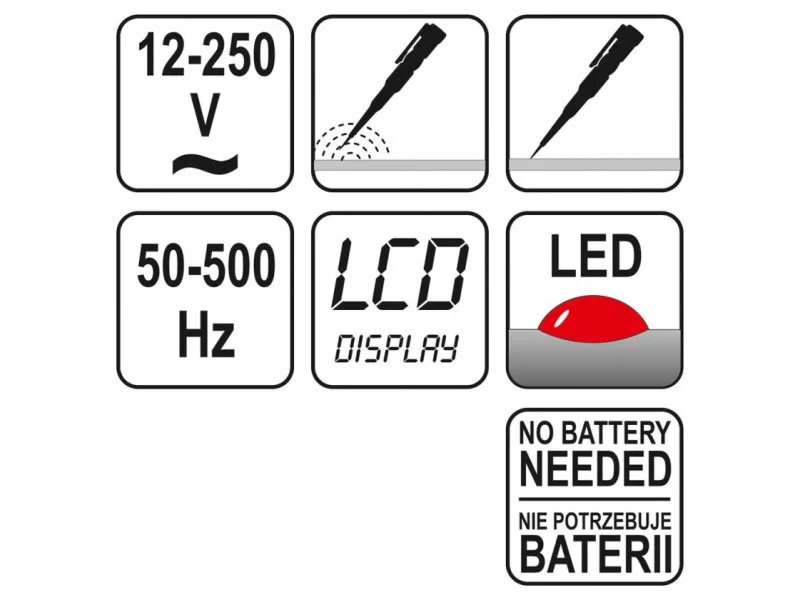 - detection of AC voltage by contact method: 12 - 250V