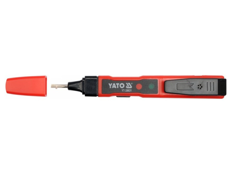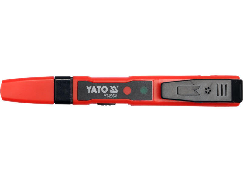 The YT-28631 voltage tester is a universal tester thatós capable of acting, among other things, as a traditional próbówk, as well as a wireless voltage indicator. It makes it possible to determine the presence of electrical voltage, detect AC voltage, for example, under plaster, as well as perform a wire continuity test and check the status of batteries or rechargeableós batteries. The presence of voltage is indicated by the illumination of one of the diodesód located in the tester housing.
