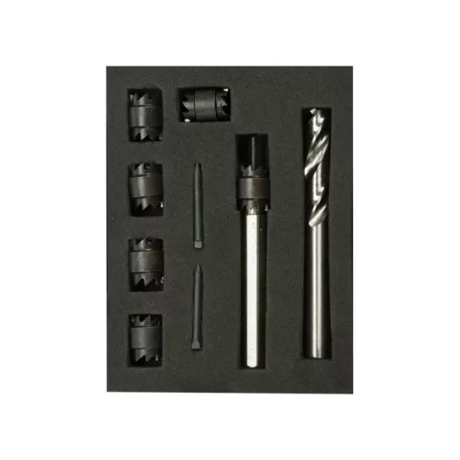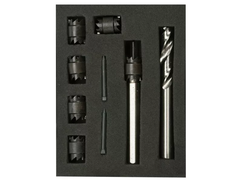 Professional set designed for quick removal of welds, welds, and car body joints. It contains 6 double -sided lace cutters, fixing handle, 3 fixing steps and a special HSS drill 8 mm.