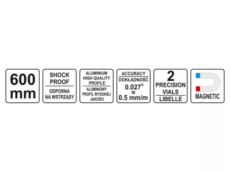Magnetic spirit level made of stable aluminum profile l-600 mm