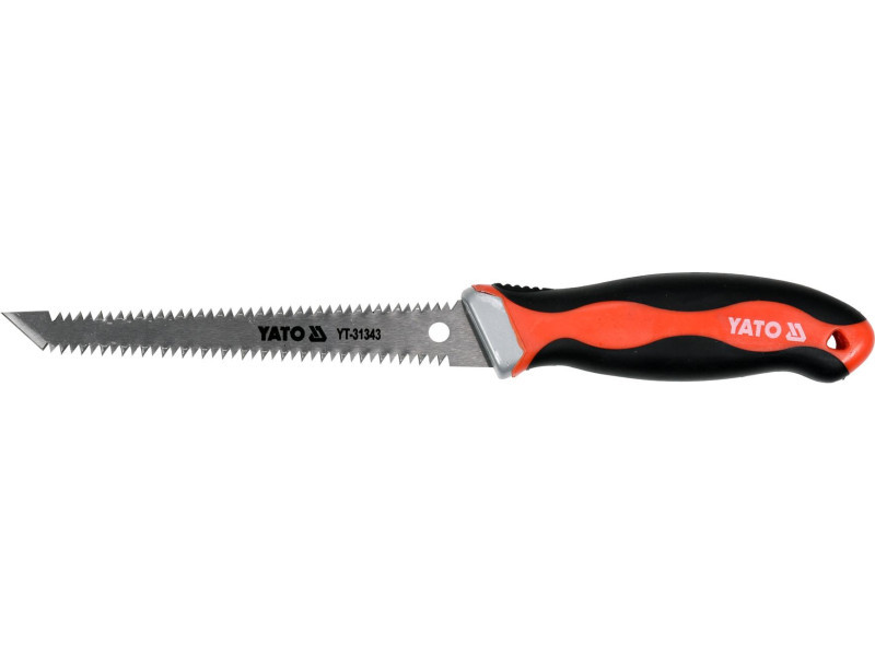 The short blade and pointed, knife-like shape allow the saw to be used in drywall projects.