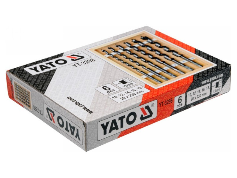YATO wood drill set. Tools made of high -quality carbon steel. Threaded blades, ground edges. Silicial handle, cooperate with a drill handle up to 13 mm. They are suitable for drilling in wood, furniture plate, plywood.
