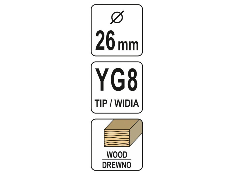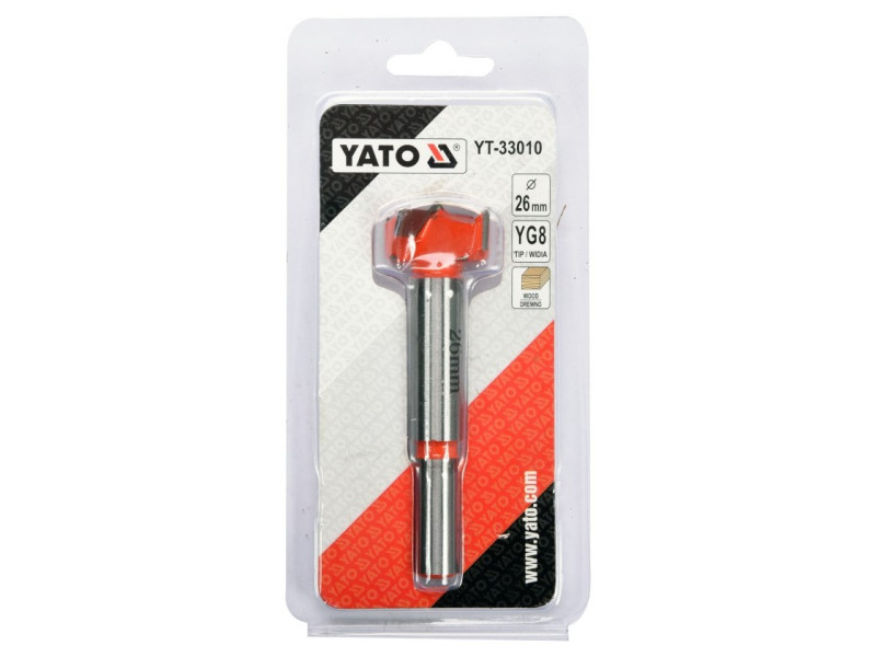 YATO YT-33010 hinge wood drill bit 26mm designed for drilling precise holes without jagged edges in soft wood, plywood, plastic.