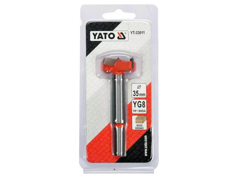 YATO YT-33011 35mm hinge wood drill bit designed for drilling precise holes without jagged edges in soft wood, plywood, plastic.