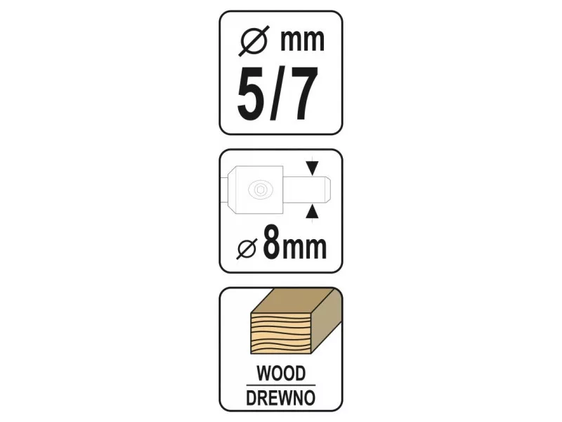 Drill for YATO YT-33022 confirmatics. Designed for drilling holes for furniture screws in wood and wood -based materials. The three -stage design and a perfect fit to the shape of confirmes allows making complex holes in one working cycle. Irreplaceable in the production of furniture. • made of durable and resistant steel • precisely centered • cylindrical handle with a diameter of 8 mm