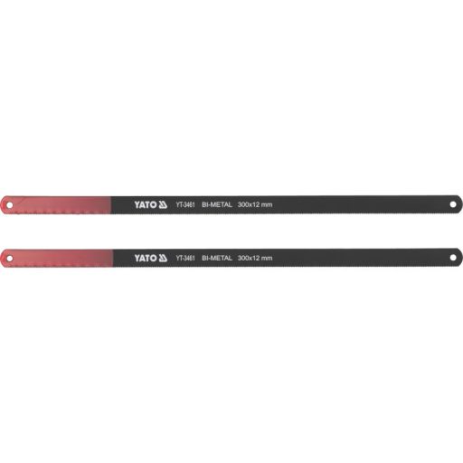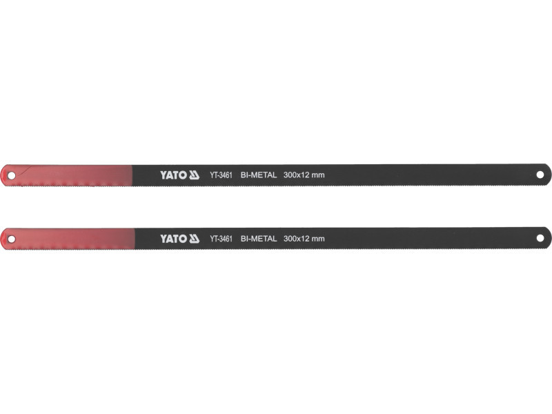 Narrow one -sided metal cutting blade 300 x 12 x 0.6 mm. Made of special M2 and 6150 steel connected in laser technique. 24 TPI scale. Set 2 for cutting bars, tubes, angles and other elements made of steel and colored metals.