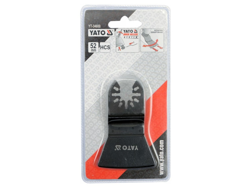 This accessory for the oscillating multifunctional tool is intended for ripping adhesives, mortars, paint coatings and other similar applications. Multifunctional oscillating tools and accessories from the YATO QUICK RELEASE SYSTEM series allow for quick, leap -free replacement of accessories, which significantly facilitates and accelerates work. YATO QUICK RELEASE SYSTEM accessories work best with compatible YATO devices, especially YT-82220. In addition, the YATO QUICK RESLASE SYSTEM accessories are compatible with most devices available on the market, in particular with tools compatible with the Bosch OIS system. YATO QUICK RELEASE System accessories Even used with conventional fixing on the Allen screw facilitate work because they can be fastened after loosening the screw, and not after full unscrewing, as in the case of competition accessories. The multifunctional oscillating tool are the most universal tools on the market. Using a wide range of YATO accessories, you can cut them, cut deeply, sand, remove mortars and adhesives, scratch painting coatings and work in places inaccessible to other devices. All this achieves thanks to the oscillations of high -frequency accessories, thanks to which we maintain full control over the tool (there is no effect of "recoil" typical of rotational cutting) and with a minimal vibration. In the case of multifunctional tools, the equipment determines the usefulness of the device. It expands its capabilities, but also the quality of accessories has the greatest impact on the work efficiency of devices. Convenience is also very important, every user of the device with the possibility of harshly replacement of accessories will appreciate this function.