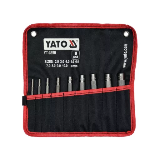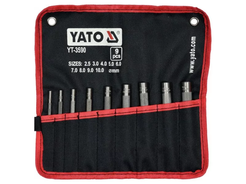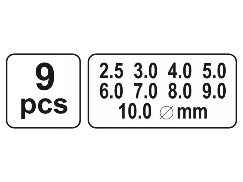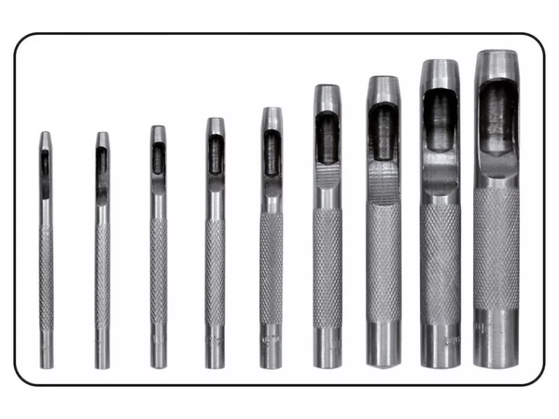 Tubular cutouts made of hardened carbon steel with the symbol #45 ground and polished. The kit includes cutouts with the following diameters of 2.5; 3; 4; 5; 6; 7; 8; 9; and 10 mm. They have holes for removing cut out material, pumping surface, packed in a case for cutting round holes in materials such as leather, rubber, soft plastics, textiles, cartons, etc.