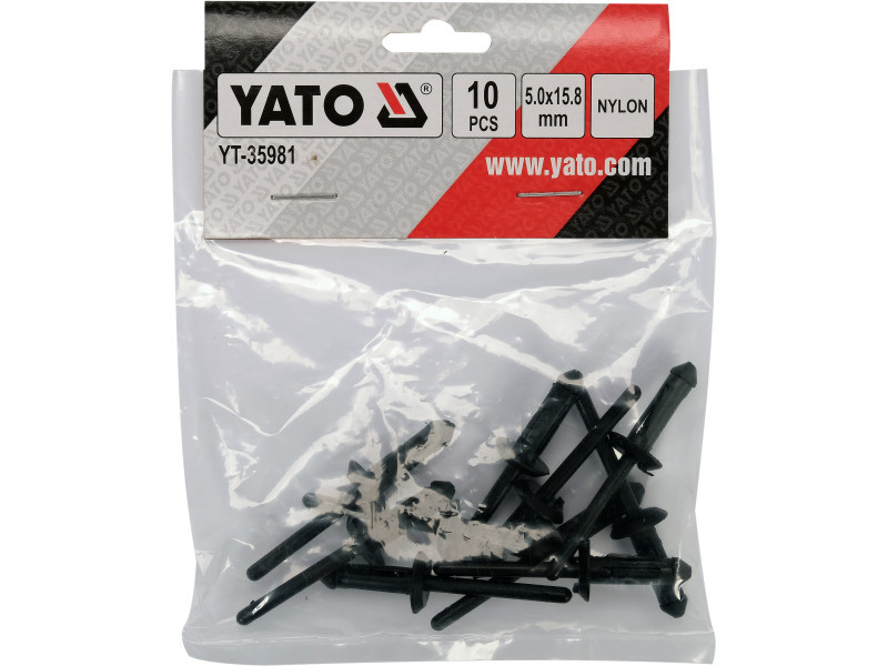 Set of 10 pieces of plastic rivetsó size 5.0 x 15.8 mm. Designed for attaching, among other things, plastic moldings, car liners, upholstery, engine covers, wheel arches.