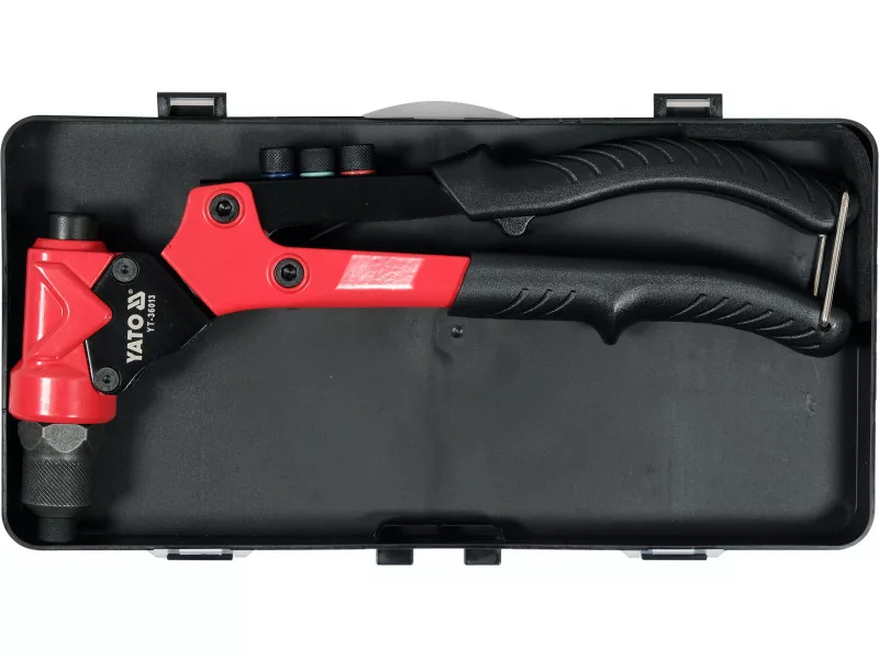 The riveting machine with a 360° rotating head allows you to work in a convenient position, suitable even for places with difficult access. It allows you to make rivet and rivet-nut connections, as well as cut materials and widen holes.