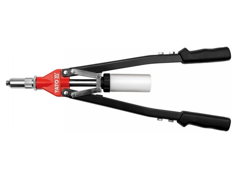 Lever riveter 3.2 -6.4 mm rivet heads: 2.4; 3.2; 4.0; 4.8 mm allow you to achieve permanent connections by locking the embedded rivets into the hole by tightening the riveting tool jaws made of durable CrMo steel aluminum body PVC-coated steel handle number of jaws: 3