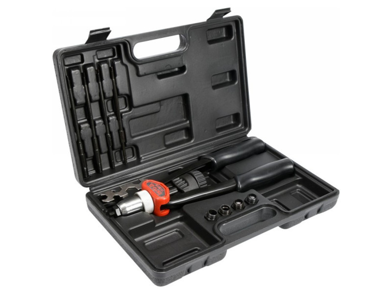 The riveting machine makes connections of materialsóby means of an internally threaded sleeve. This allows you to screw additional elementsówith metal screws or bolts.