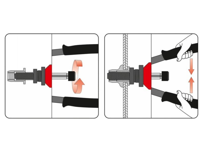 Manual rivetownica for M3-M12 niter. The riveter is intended to make connections of materials using nitonachats. Performs connections of materials with an internally threaded sleeve. This allows you to screw additional elements with metal screws or screws.