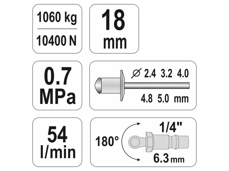 YATO Pneumatischer Blindnietgerät 1/4", 0,7 MPa, 54 l/min YATO Pneumatischer Blindnietgerät 1/4", 0,7 MPa, 54 l/min YATO Pneumatischer Blindnietgerät 1/4", 0,7 MPa, 54 l/min YATO Pneumatischer Blindnietgerät 1/4", 0,7 MPa, 54 l/min YATO Pneumatischer Blindnietgerät 1/4", 0,7 MPa, 54 l/min