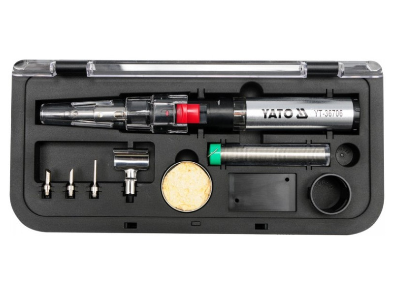 3-in-1 gas soldering iron with piezo ignition kit powered by lighter gas - butane with a power of 30-125W.