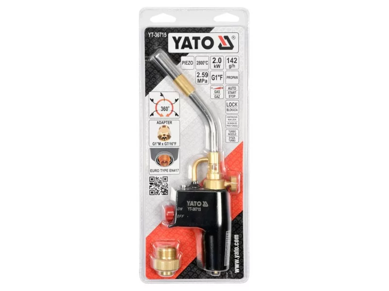 YATO burner designed for professional applications. Especially recommended for hydraulic and installation work, it allows: