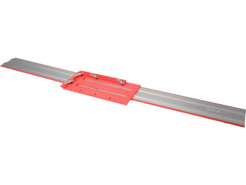 When combined with a YT-82159 cutter, you can cut gres, stone, and clinker wet. There is a possibility to connect two or more guides together, e.g. for cutting OSB boards lengthwise.
