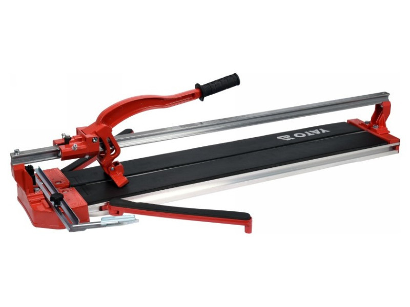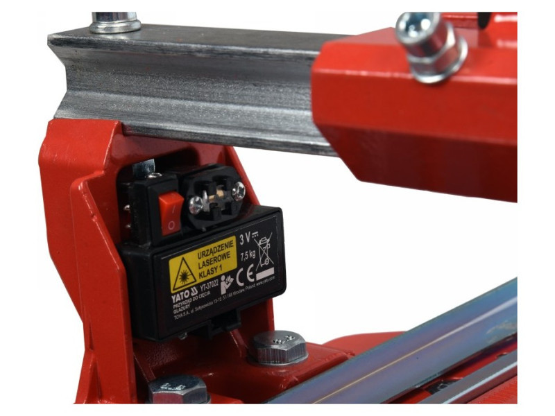 Cutting machine with laser pointer, designed for ceramic tiles with a maximum length of 800 mm. The stable base of the device is made of aluminum. The combined cutting knife and effective breaker move on a single steel guide /breaker unit bearing/.