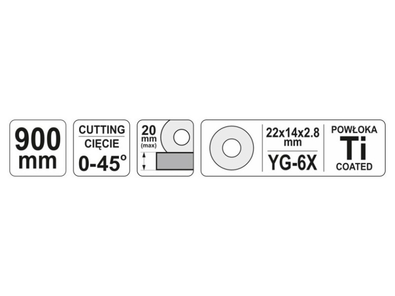 • Cutting wheel dimensions: 22 x 14 x 2 mm