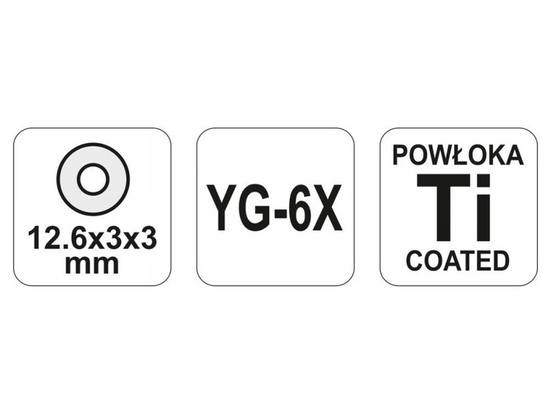 The 12.6x3xmm circular cutting knife is made of specially hardened YG-6X carbides additionally sharpened equipped with a threaded pin for self-assembly. Applied TI coating allows to reduce dry friction and increases abrasion resistance.