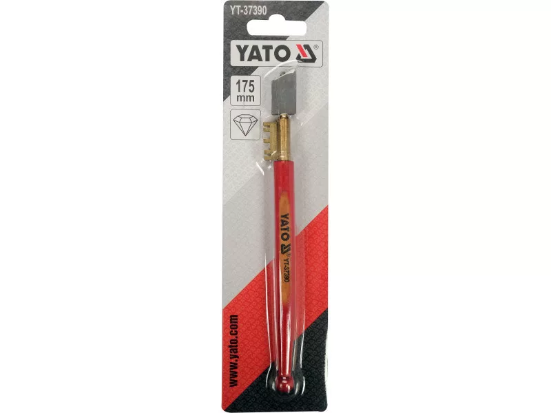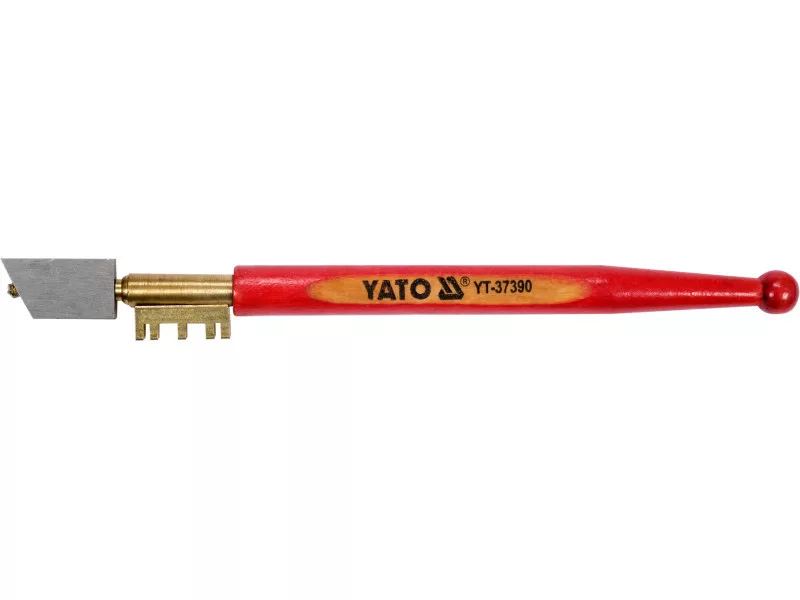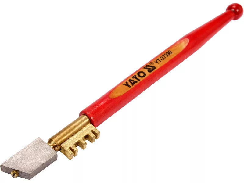 Diamond-tipped glass cutter. Above the head is brass element with cutouts for breaking glass.