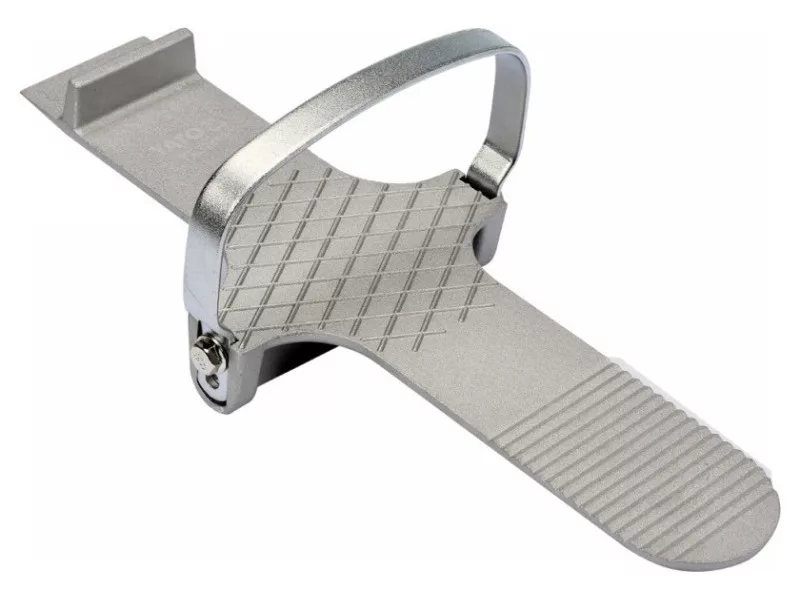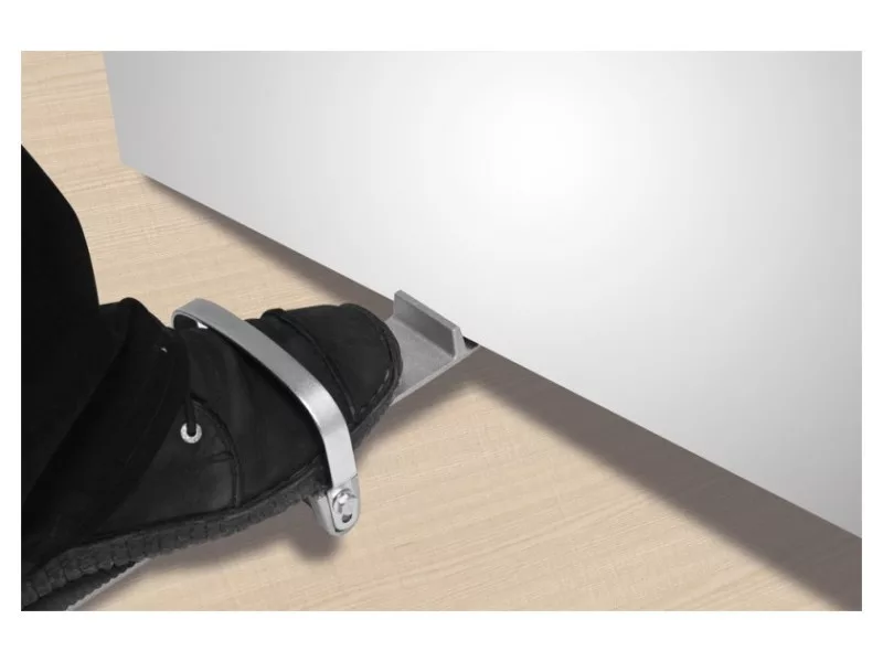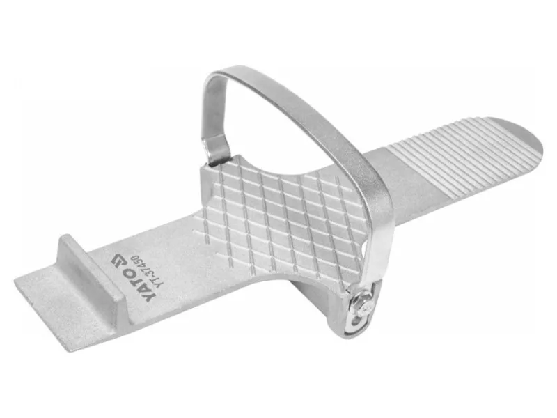 By pressing the lever with the foot, we lift and hold the installed panel a few centimeters up. We can pre-fasten it in this position. A special stirrup encompassing the shoe, enables hands-free maneuvering, lifting and moving of the plate. A great advantage is that the use of a lever, allows one person to perform these operations.