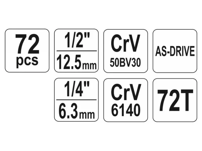 YATO Steckschlüsselsatz 72-teilig 1/4", 1/2" CrV