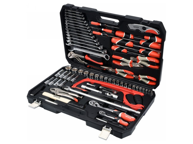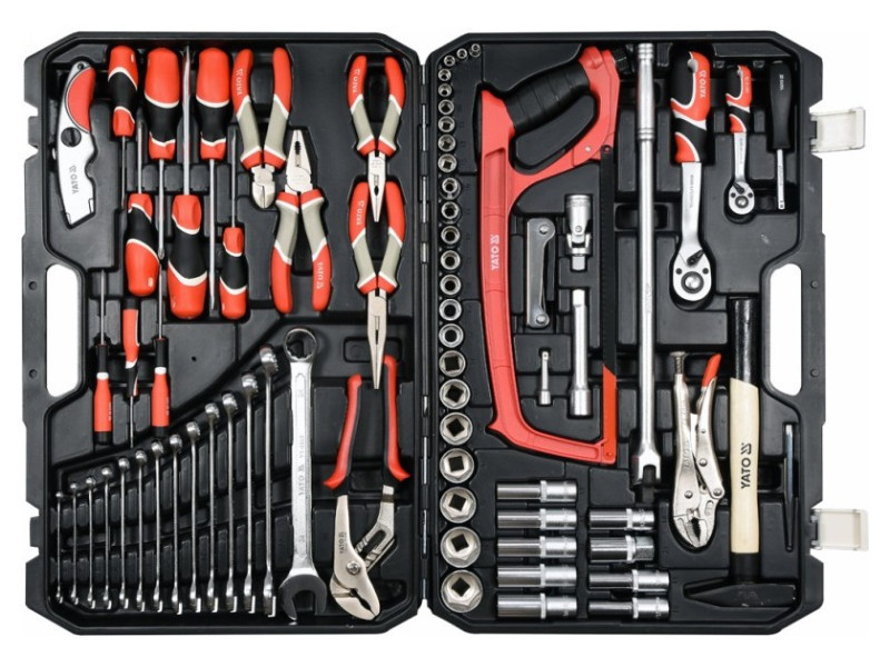 A professional 79-piece tool set designed for the needs of specialized automotive and mechanical service centers. The socket wrenches and drive sockets are made of durable, tool-grade chrome-vanadium steel CrV.