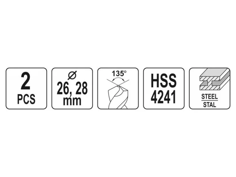 - HSS 4241 steel provides several times faster drilling and maintains resistance to damage and dulling, maintaining drill geometry