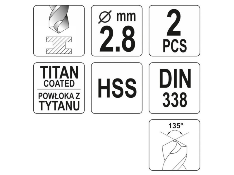 A ground drill with aggressive blade geometry. Thanks to the titanium nitride coating, it drains heat very efficiently and does not move when working in hard steel species. The blade attack angle of 135 ° allows drilling even without prior use of a point. Made according to the DIN 338 standard for professional applications in industry. A drill with a cylindrical handle designed for standard self -stacking drilling holders and key. High pressure resistance also allows the use of column and magnetic drills. Drilling in high -quality steel, including stainless, structural and cold rolled. Drilling without the need for scoring, thanks to the aggressive geometry of the blade. Quick heat dissipation allows you to work without the use of a cooling factor, without causing a drill burning.