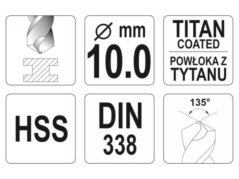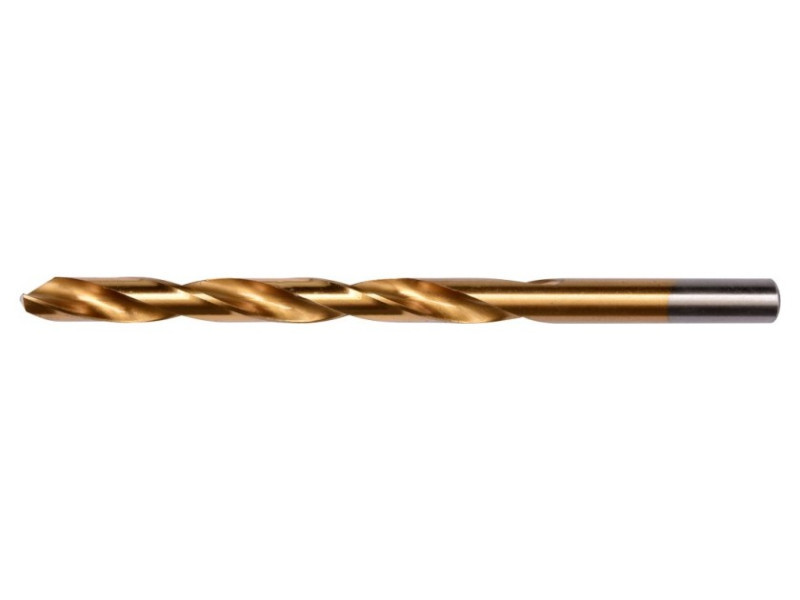 A ground drill with aggressive blade geometry. Thanks to the titanium nitride coating, it drains heat very efficiently and does not move when working in hard steel species. The blade attack angle of 135 ° allows drilling even without prior use of a point. Made according to the DIN 338 standard for professional applications in industry. A drill with a cylindrical handle designed for standard self -stacking drilling holders and key. High pressure resistance also allows the use of column and magnetic drills. Drilling in high -quality steel, including stainless, structural and cold rolled. Drilling without the need for scoring, thanks to the aggressive geometry of the blade. Quick heat dissipation allows you to work without the use of a cooling factor, without causing a drill burning.