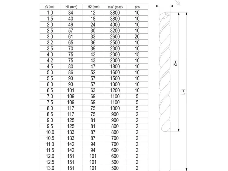 | Drill bit point angle | 135 ˚ |