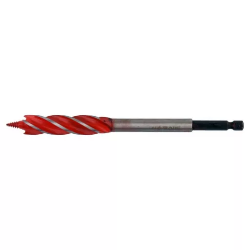 A 4-blade drill bit that leaves even and smooth hole edges and facilitates perpendicular drilling thanks to its special helix design.