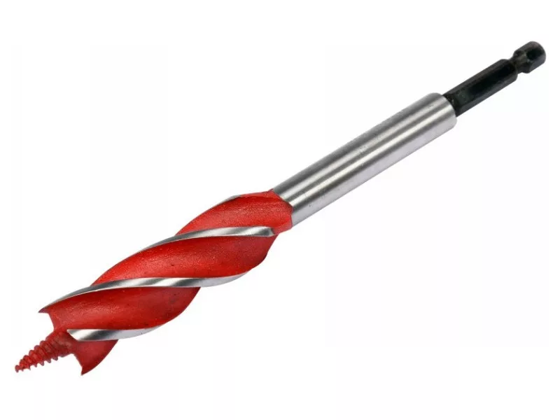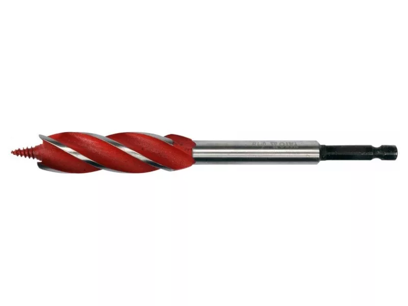 A 4-blade drill bit that leaves even and smooth hole edges and facilitates perpendicular drilling thanks to its special helix design.